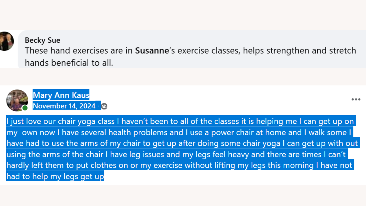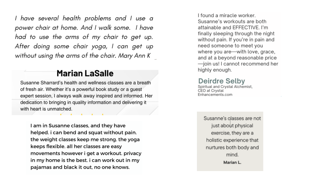 3X/ Week Chair Yoga/Chair Pilates + Seated Beginner's Weight Strength Class (One hour)